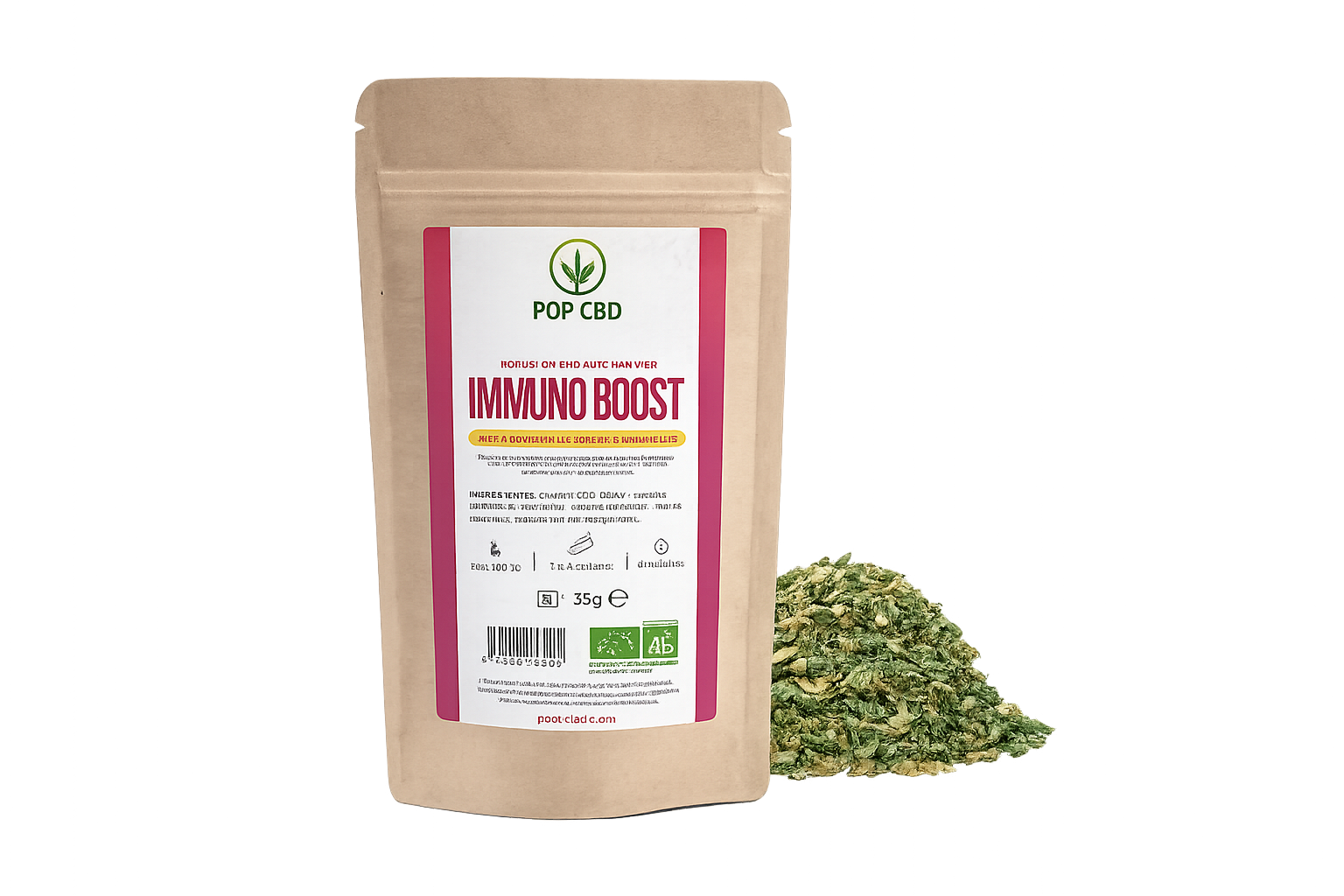 Découvrez notre infusion CBD Immuno Boost 35g, une tisane au chanvre associée à des plantes soigneusement sélectionnées.